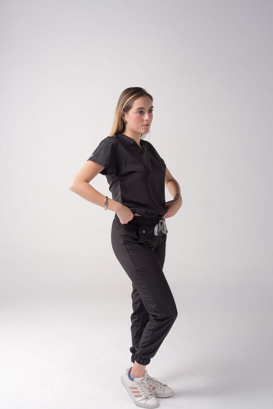 El modelo Lidio es la opción ideal para quienes buscan un uniforme práctico, original y elegante. Su blusa japonesa con cuello en V ofrece un diseño limpio y sofisticado, mientras que su pantalón estilo jogger cuenta con bolsillos laterales amplios, resorte en los tobillos para un mejor ajuste y pretina en la cintura para mayor comodidad. Confeccionado en tejido repelente a fluidos, brinda protección y frescura, adaptándose a cada movimiento durante largas jornadas. Su diseño exclusivo combina funcionalidad y tendencia a la perfección.